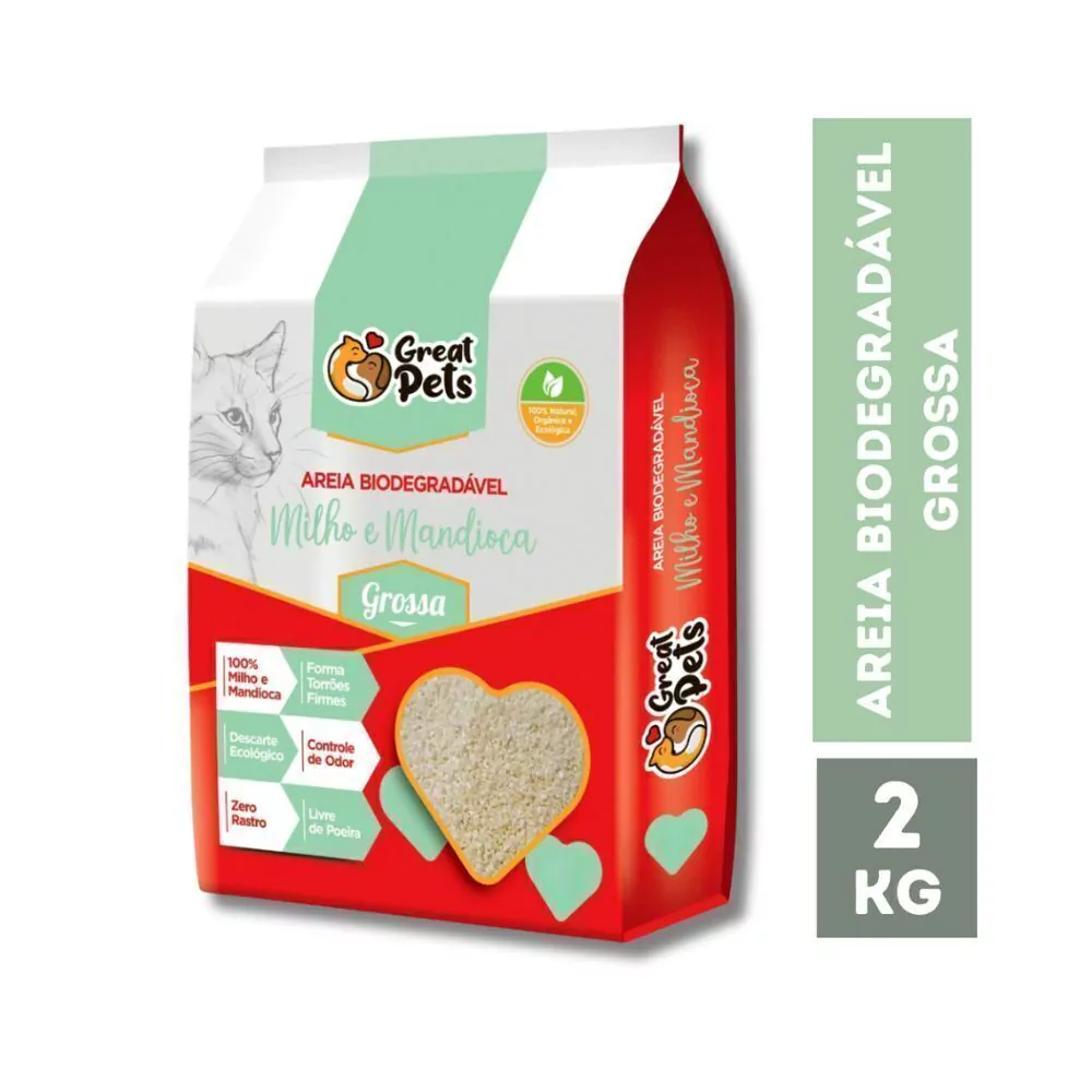 Areia Higiênica Biodegradável Great Pets Grossa 2 kg: Sustentabilidade e higiene para seu gato!