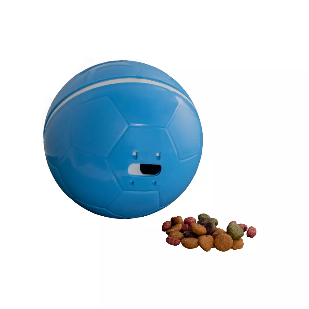 - O cão irá movimentar a Crazy Ball com a boca, o focinho e as patas atraído especialmente pelo aroma da ração e com isso irá brincar até conseguir tirar e comer toda ração do brinquedo.