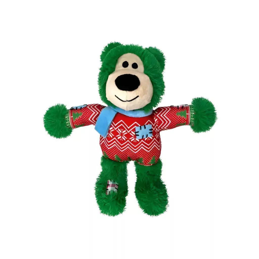 - A pelúcia Kong Holiday Wild Knots Bear possui um design divertido e único inspirado no Natal;