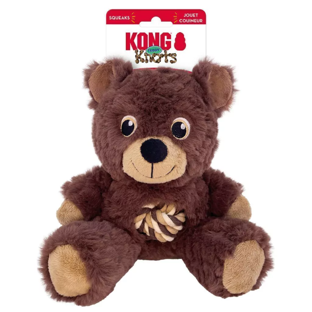 - O Kong Knots Teddy Assorted Medium são brinquedos de pelúcia para brincar de morder e pegar, com design alegre, flexível e divertido para qualquer cão.