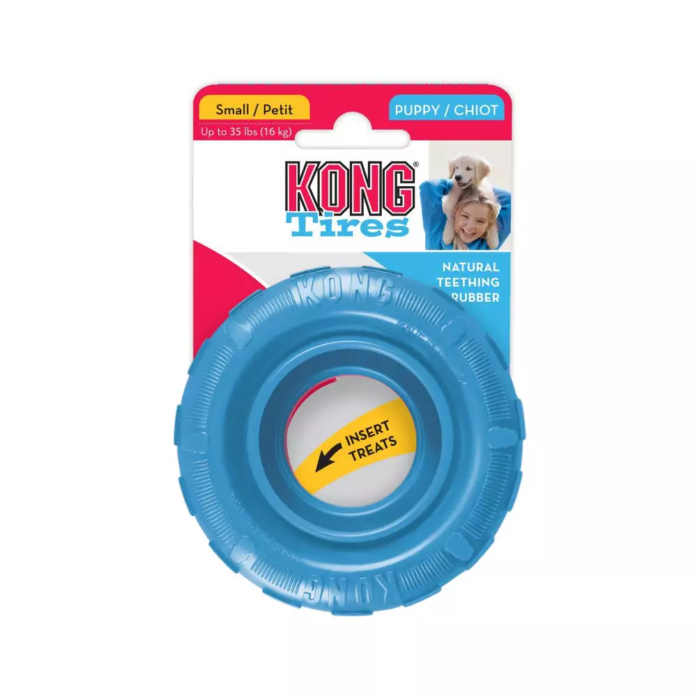 - O Kong Tires Puppy é um brinquedo de morder, desenvolvido para filhotes em fase de crescimento de até 8 meses.