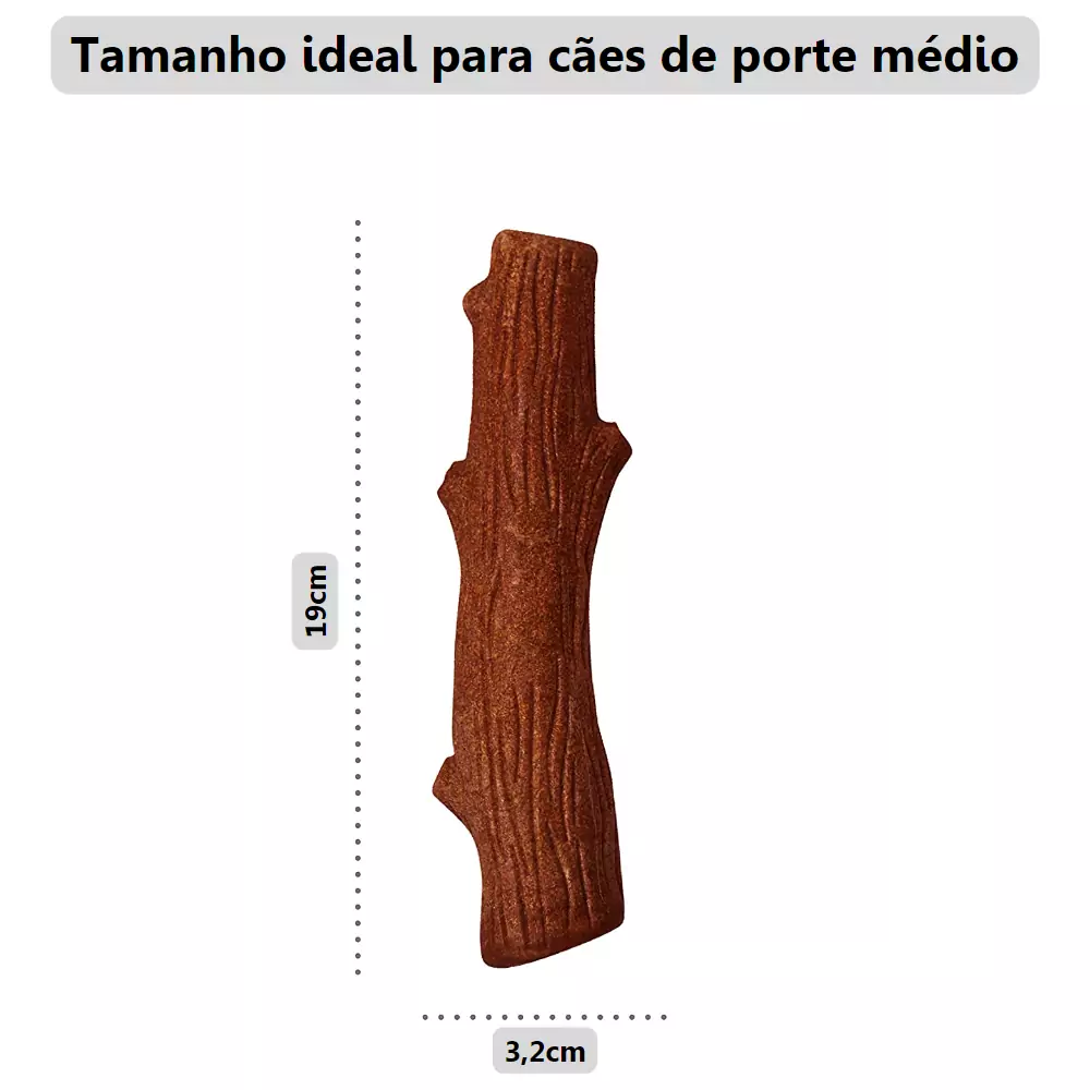 - A mistura de nylon com madeira de verdade, proporciona uma mordida prazerosa e muita segurança para seu cão, além de controlar o tártaro.