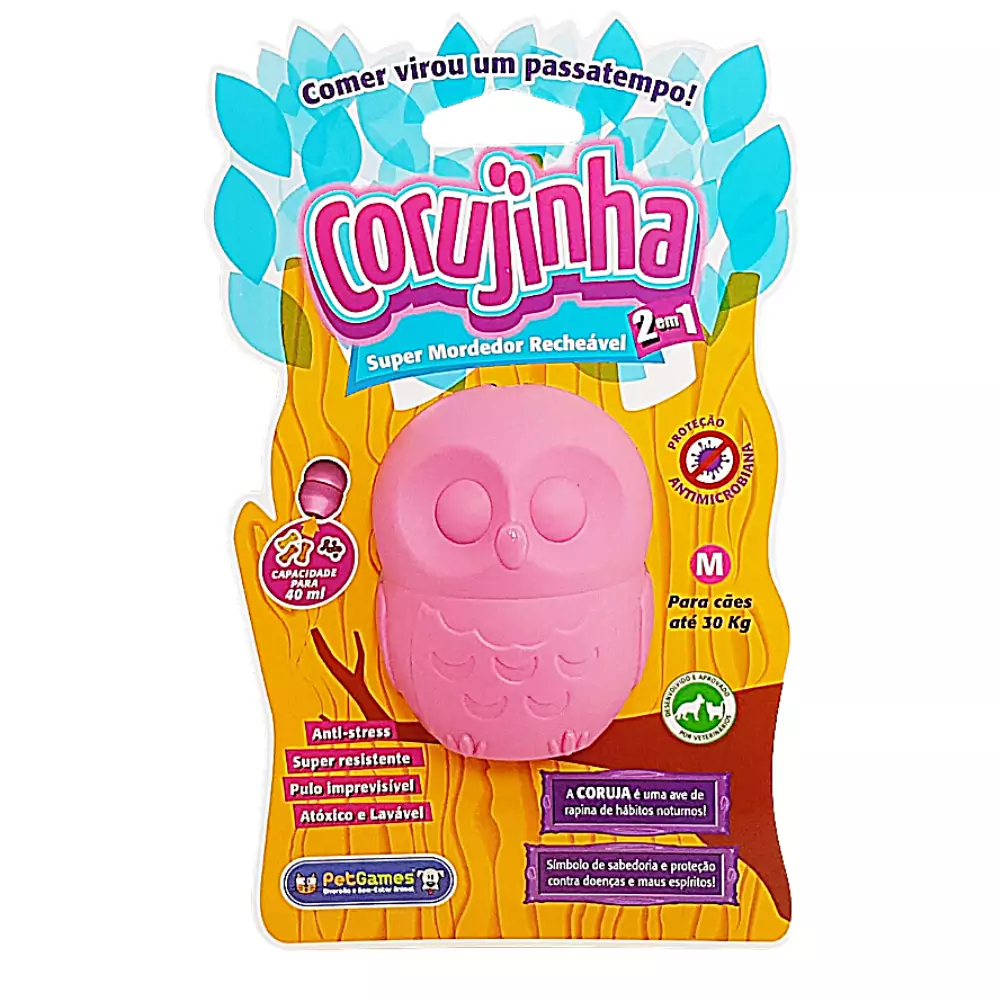 - O Brinquedo Pet Games Corujinha é um excelente mordedor recheável com compartimento para alimentos úmidos.