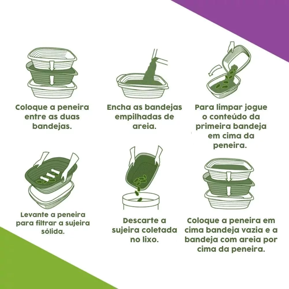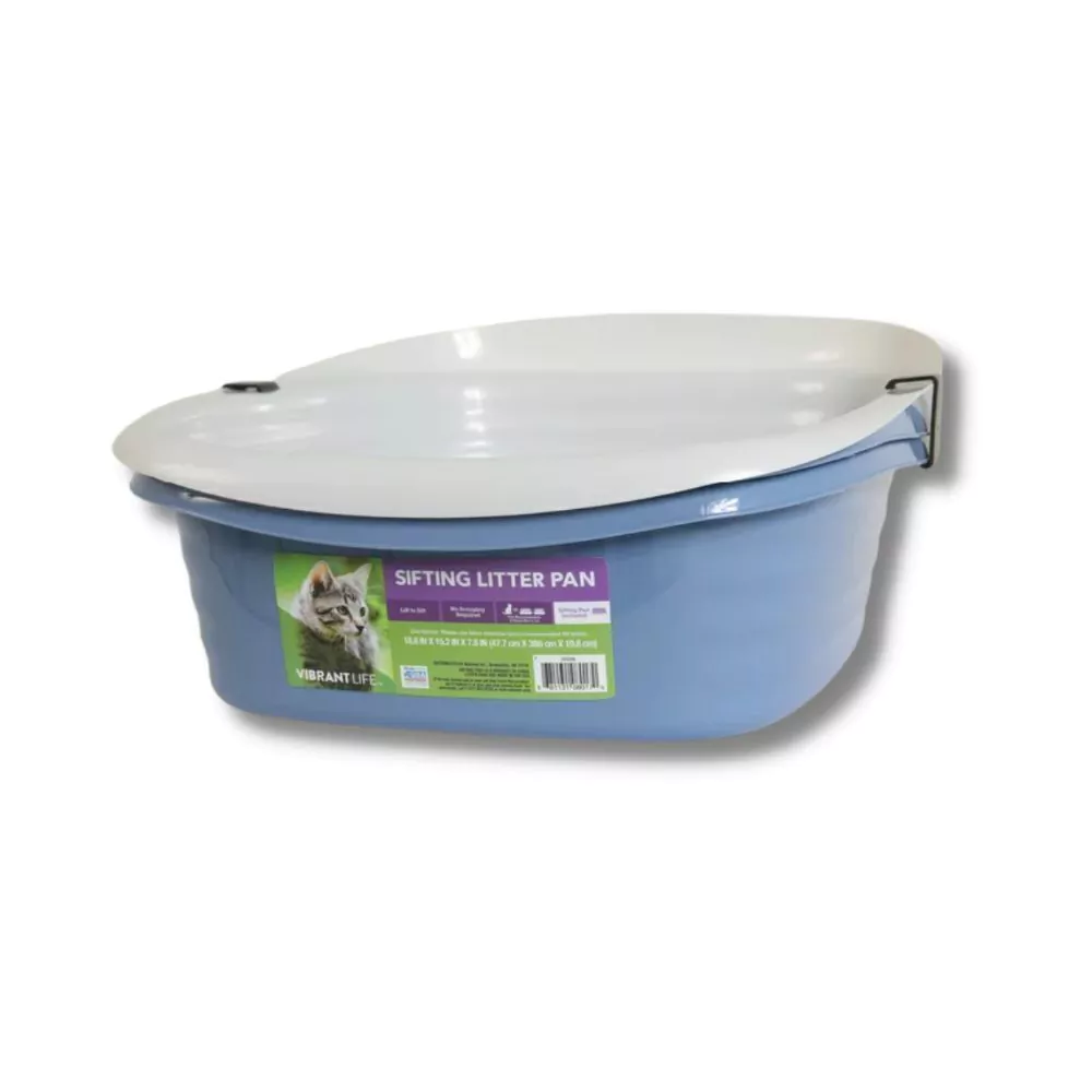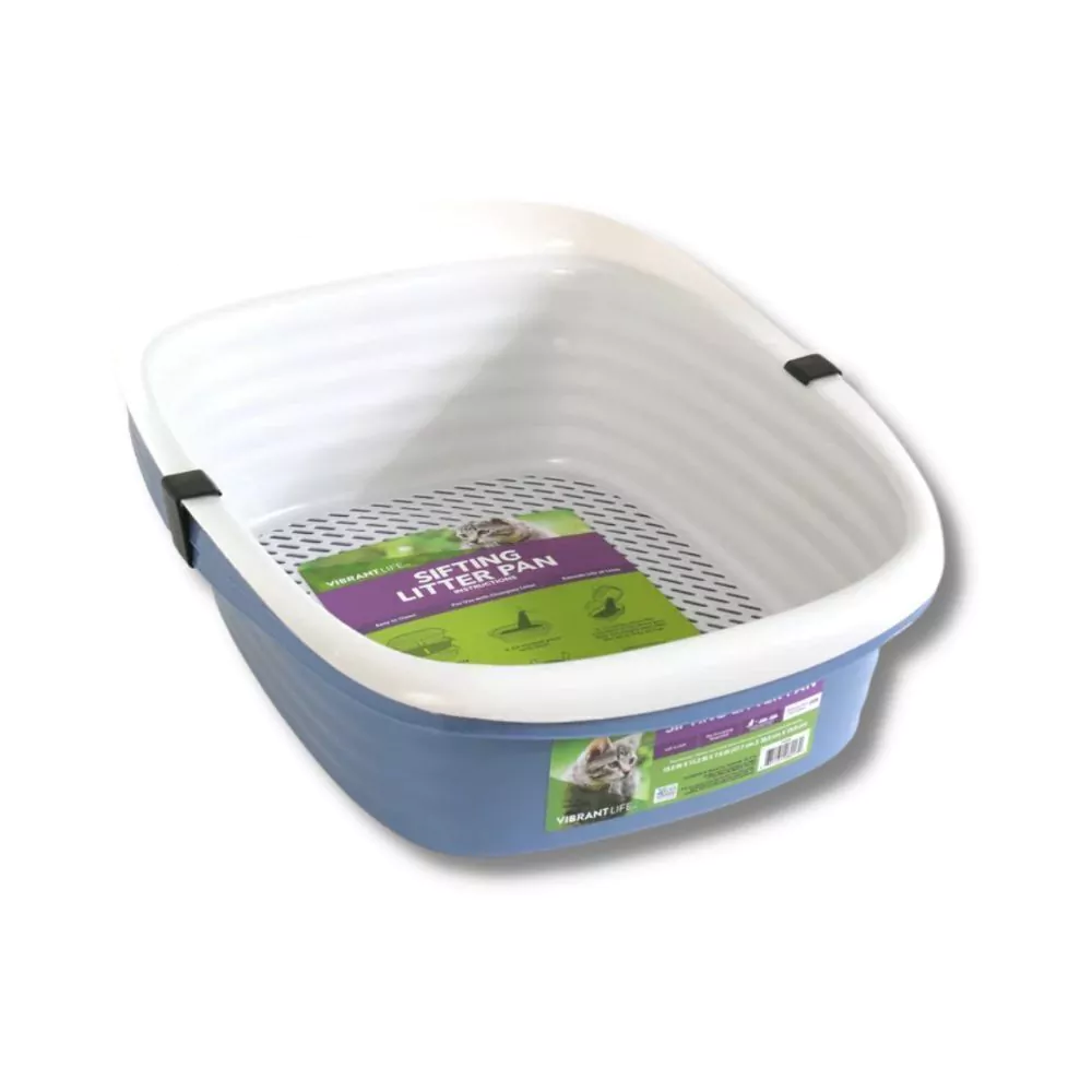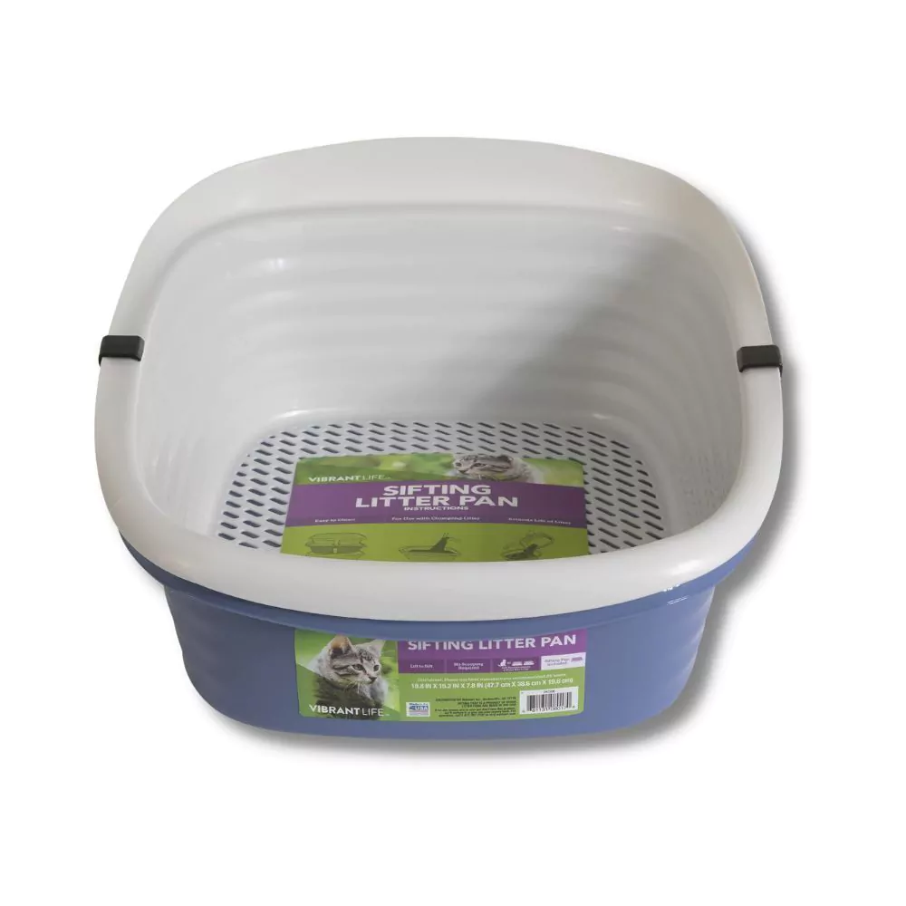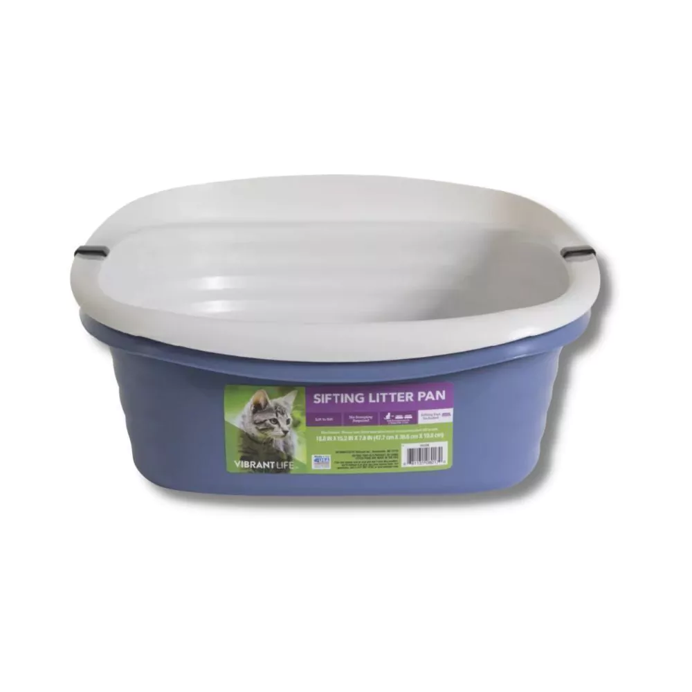 - A Vibrant Life Sifting Litter Pan facilita a limpeza do sanitário dos gatos, eliminando a sujeira sem a necessidade de usar uma pá.