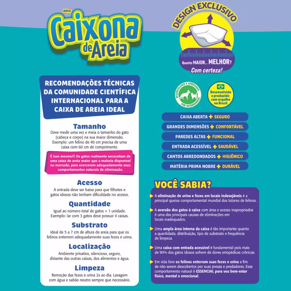 - Atende as recomendações técnicas-científicas internacionais para a caixa de areia felinas.