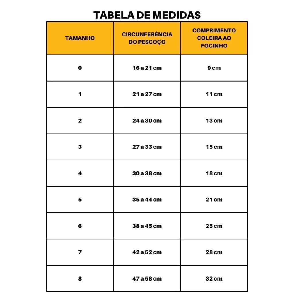 Tamanho - Circunferência do pescoço - Comprimento coleira ao focinho