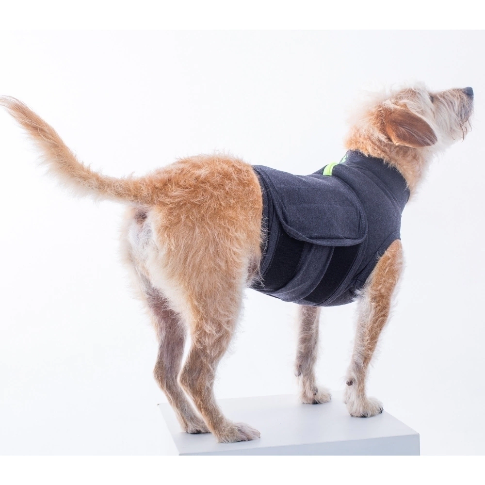- Por meio de suas duas faixas ajustáveis o Colete Calm da Pet Med proporciona uma leve compressão que traz conforto ao pet, como um abraço;