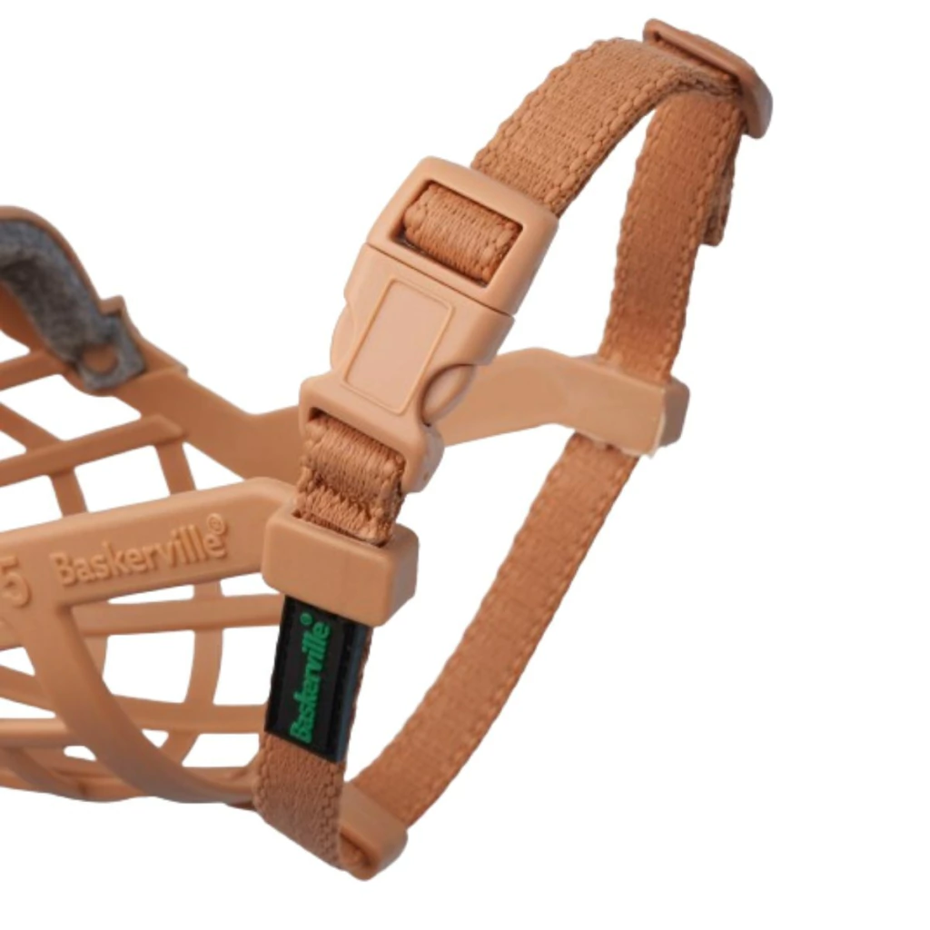 - Focinheira moldável: a cesta da Focinheira Baskerville Classic Basket é feita com borracha termoplástica (TPR), o que faz com que ela possa ser remodelada quando colocada em água quente, o que proporciona um modelo exclusivo para cada cão;