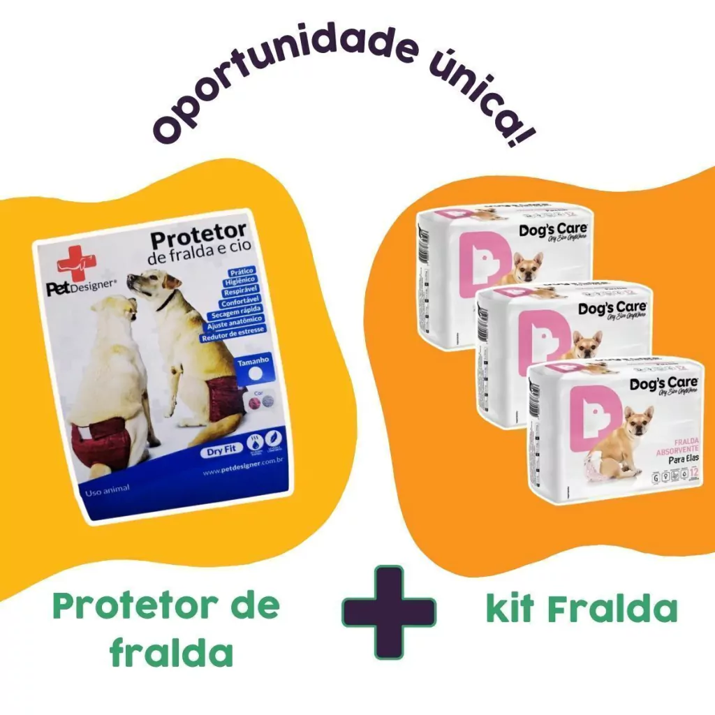 - O kit de 36 Fraldas p/ Pet Fêmea Dog’s Care e Calcinha Protetora de Fralda Pet Designer era a cominação que você precisava!