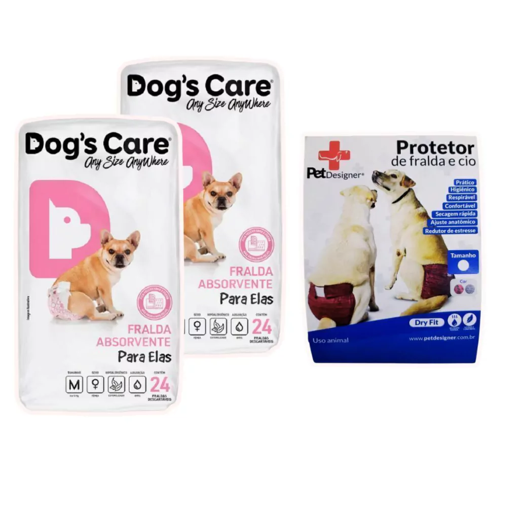 - O kit de 48 Fraldas p/ Pet Fêmea Dog’s Care e Calcinha Protetora de Fralda Pet Designer era a cominação que você precisava!