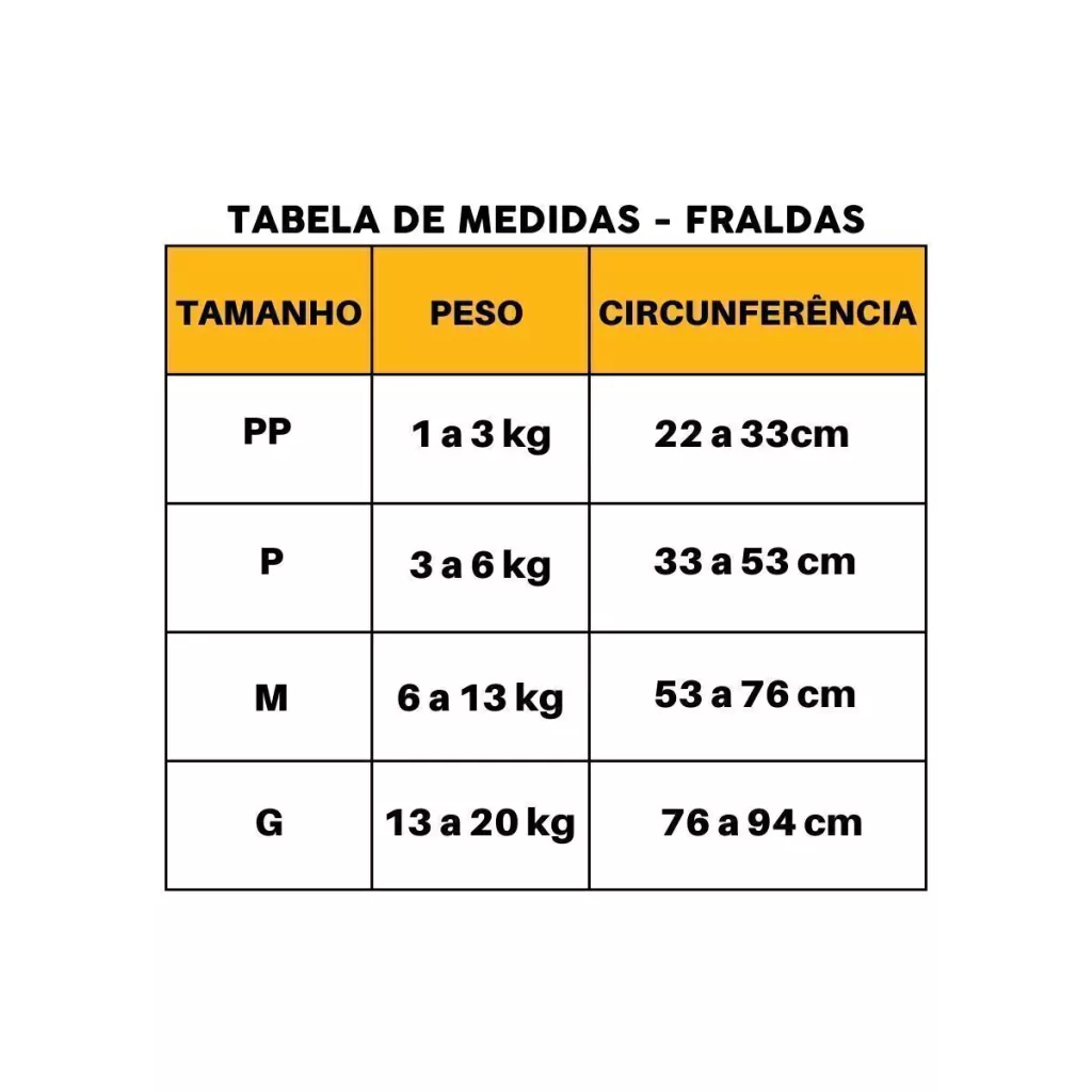 - Tamanho PP: 1 a 3kg - Cintura até 33cm