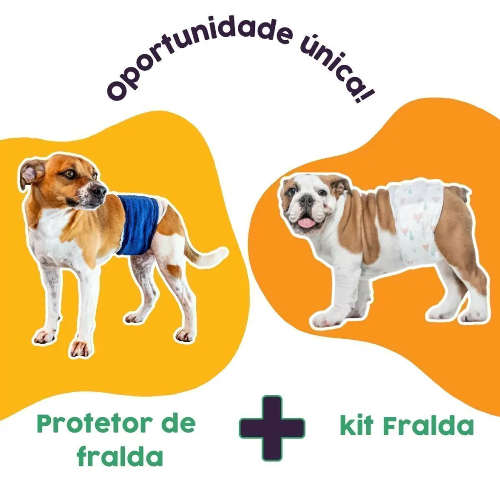 - A fralda (faixa absorvente) tem um formato anatômico, que proporciona mais conforto e não incomoda o escroto e as patas dos cães machos. O protetor é ideal para situações em que o cão (macho) necessita usar fraldas por incontinência urinária, micção excitável ou outros problemas, conforme a orientação veterinária, tornando assim, o kit uma combinação perfeita!