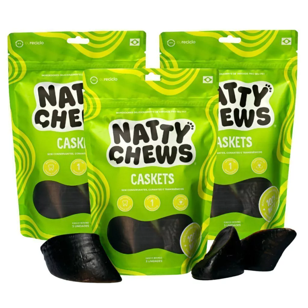 - Conteúdo da embalagem: cada pacote contém 3 unidades de casco bovino, totalizando 9 unidades neste Kit;