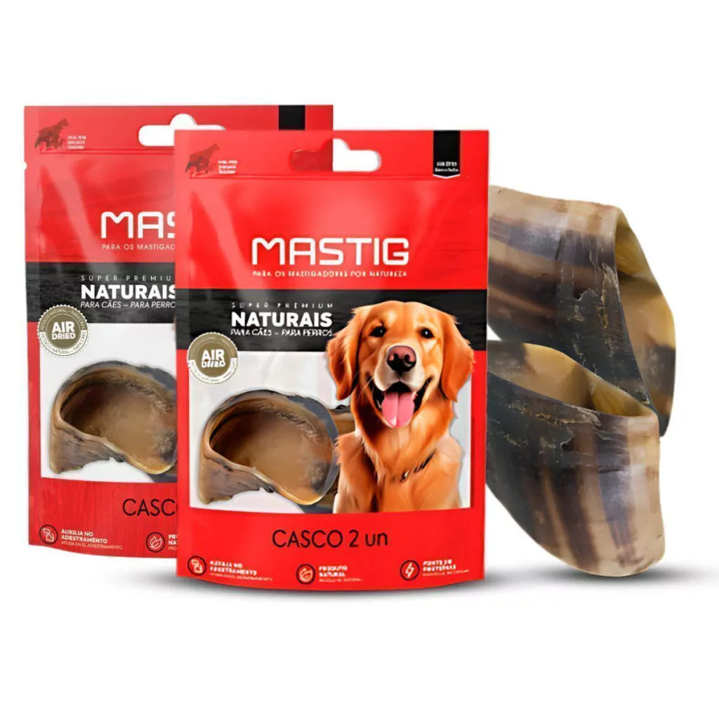 - Mordedor natural e livre de conservantes: o Casco bovino MASTIG é um petisco natural, sem adição de conservantes, corantes ou outros produtos químicos. É um petisco saudável e seguro para o seu cão;