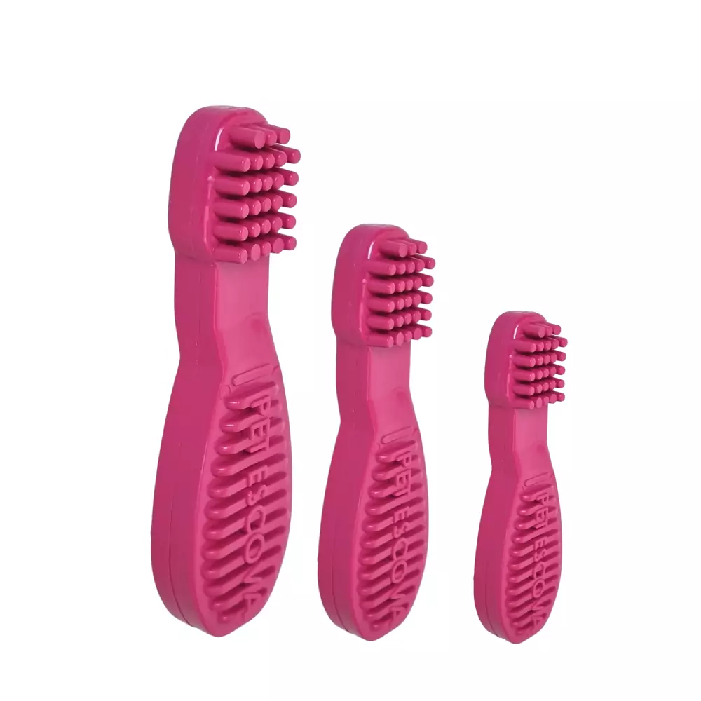 - Mordedor em nylon maciço com formato de escova dental;