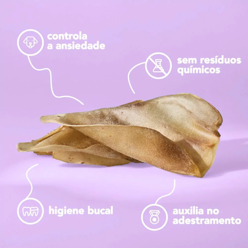 - 100% Natural: São feitos apenas com orelha bovina desidratada, sem conservantes ou aditivos artificiais.