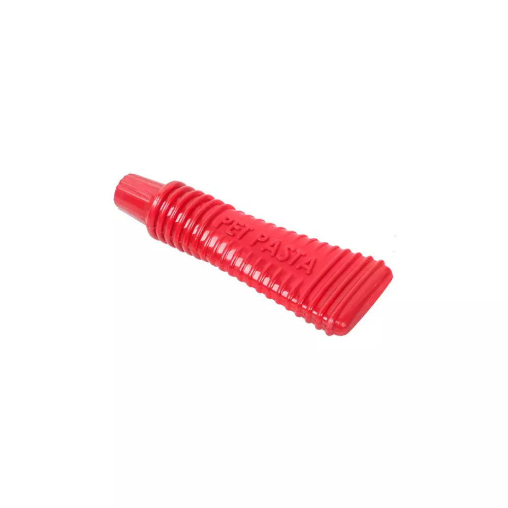 - As ranhuras do brinquedo são funcionais, tornando-o mais fácil de pegar, podendo inclusive ser utilizada junto de ração ou pestiscos pastosos, tornando-a ainda mais agradável para roer.