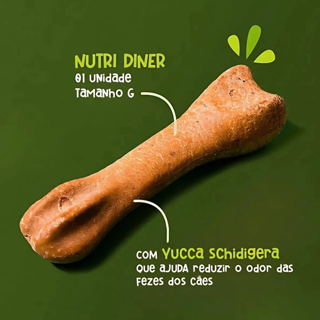 - A linha Nutri Diner apresenta um design em formato de osso, duradouro, incentivando a mastigação.