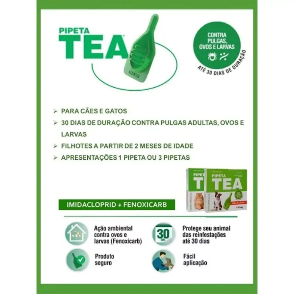 - Contraindicações: A Pipeta Tea é contraindicada para animais com hipersensibilidade ao fipronil.