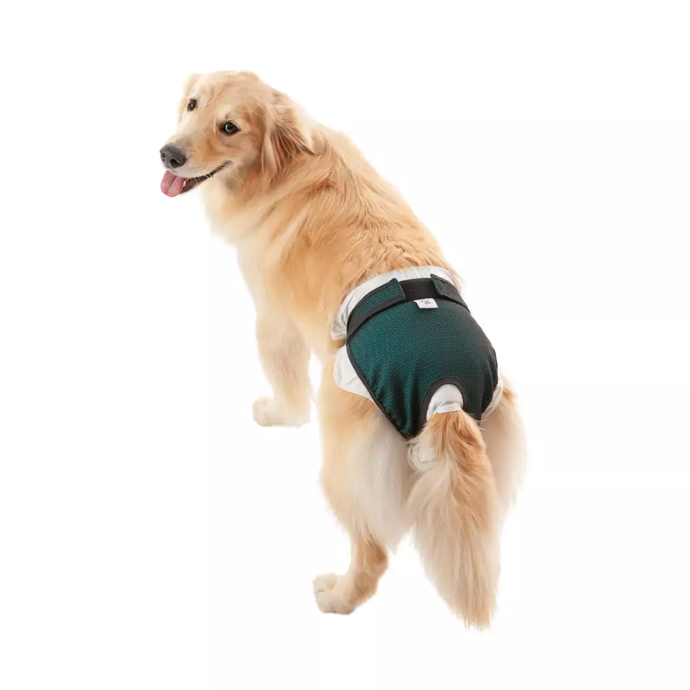 - É confortável e não estressa os cães, além de evitar que a fralda ou absorvente de fluídos escorregue ou sejam removidos, protegendo assim seus móveis, pisos, tapetes e carros de acidentes;