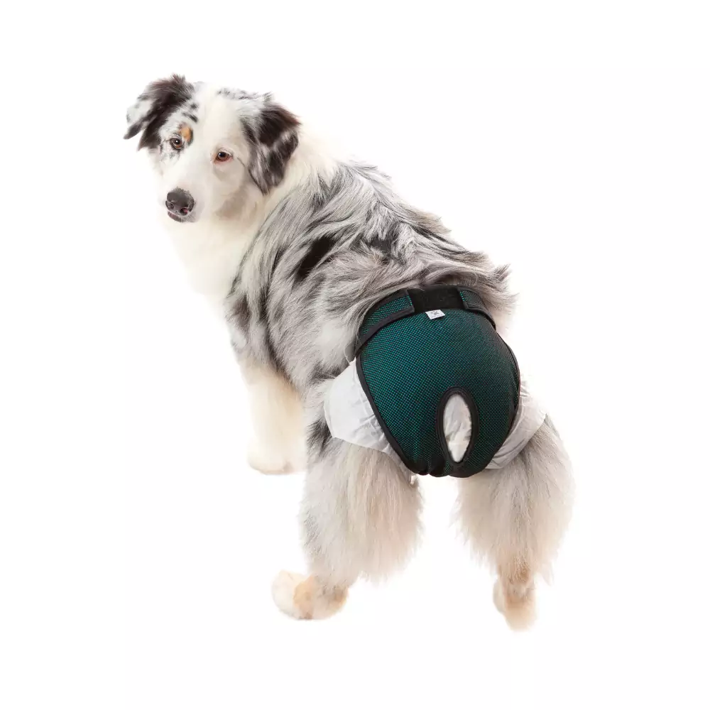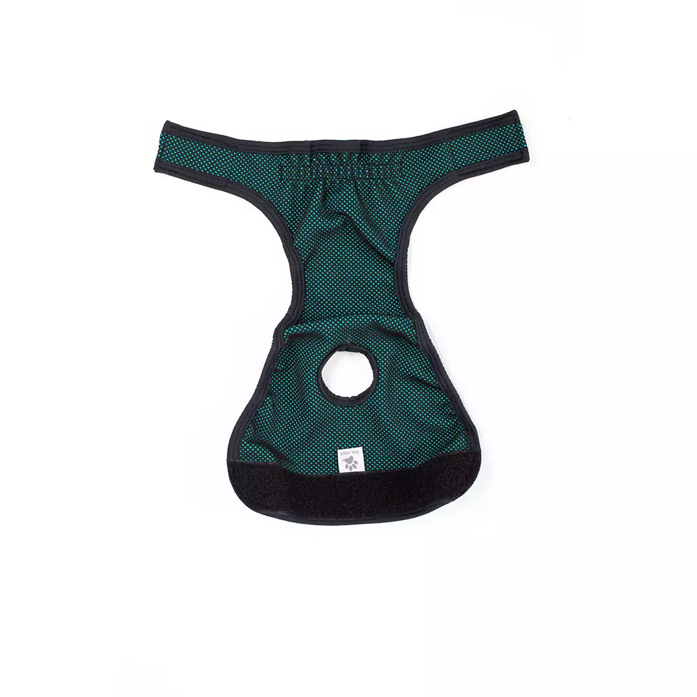 - É confortável e não estressa os cães, além de evitar que a fralda ou absorvente de fluídos escorregue ou sejam removidos, protegendo assim seus móveis, pisos, tapetes e carros de acidentes;