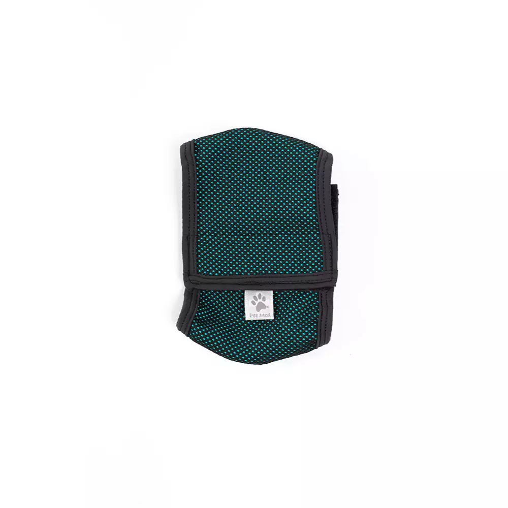 - Vista o Protetor para Fraldas pelas patas posteriores e ajuste o velcro, tomando cuidado para não comprimir demais o corpo. Use conforme orientação veterinária.