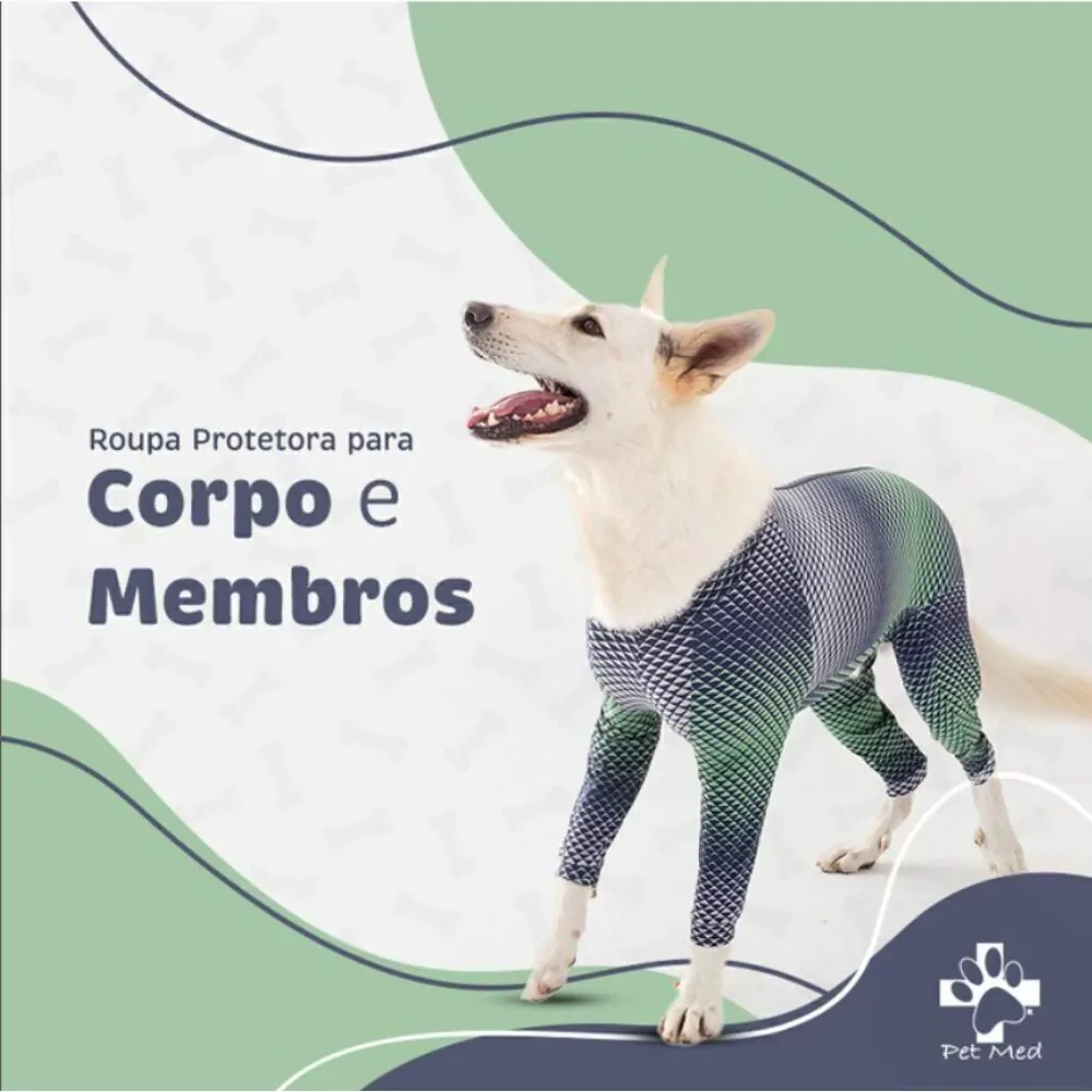 - A roupa protetora corpo e membro de cães da Pet Med é um modelo exclusivo e patenteado, com design e tecnologia únicos.