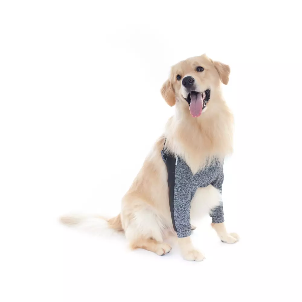 - Possui material acolchoado para aliviar o impacto nos cotovelos dos cães;