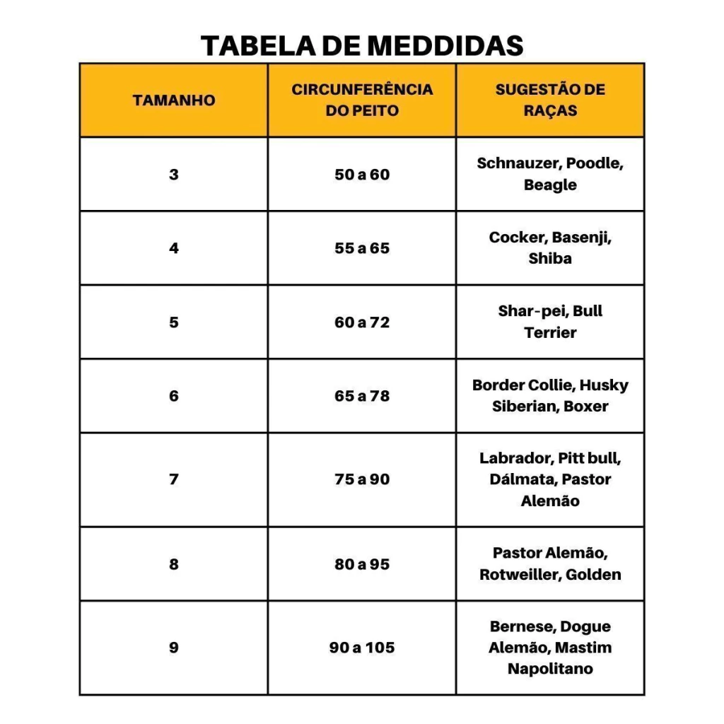 - Não leve em consideração apenas a raça do pet, é necessário medir a circunferência do peito, para ter certeza que está comprando o produto correto.