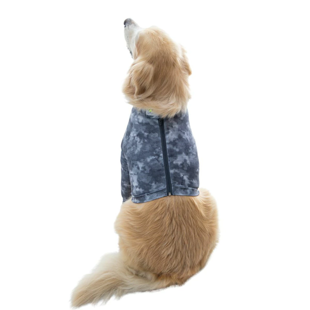 - Vista a roupa pelas patas da frente, feche o velcro atrás do pescoço, sem comprimi-lo demais, por fim feche o zíper no dorso do pet; se o animal for peludo, é preciso proteger o pelo com o dedo para o zíper não enganchar.